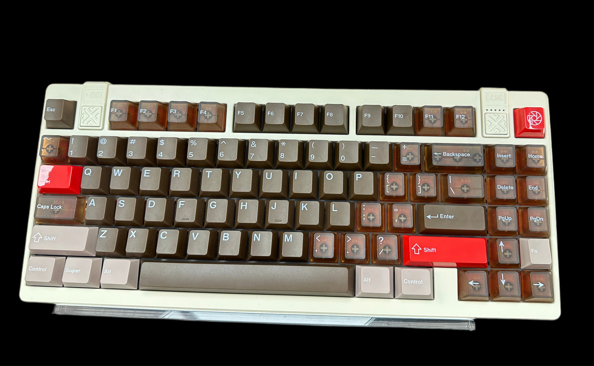 Rich, warm, and full of fire—Café Inferno blends the cozy depth of roasted coffee tones with blazing red accents for a look that’s both refined and rebellious. With translucent smoky keycaps, a soft cream frame, and standout details like the red rose emblem, this custom-built mechanical keyboard brings heat to any setup. Whether you’re coding, gaming, or creating, Café Inferno delivers serious performance with a side of bold aesthetic.